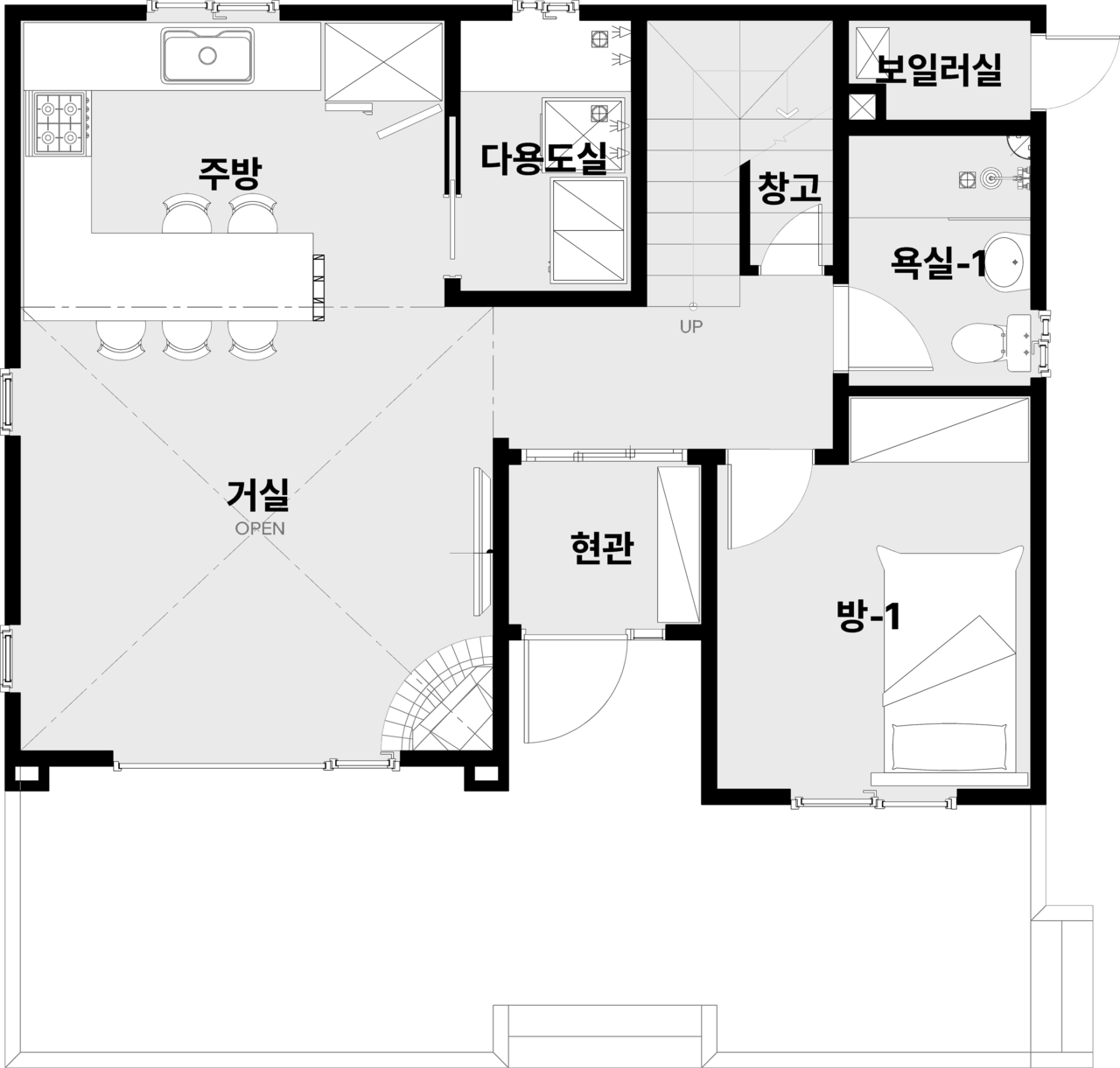 현관, 거실, 주방, 다용도실| 방 3, 화장실 2, 드레스룸, 창고, 보일러실
