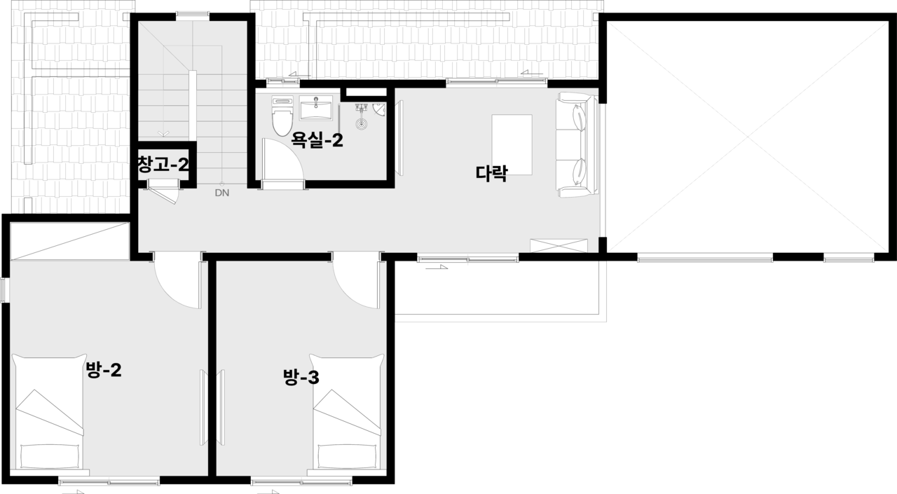 현관, 거실, 주방, 다용도실| 방 3, 화장실 2, 창고 2, 다락