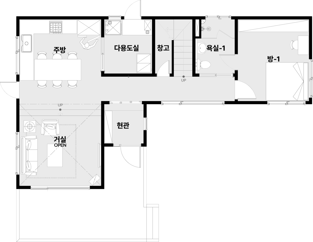 현관, 거실, 주방, 다용도실| 방 1, 화장실2, 드레스룸, 창고