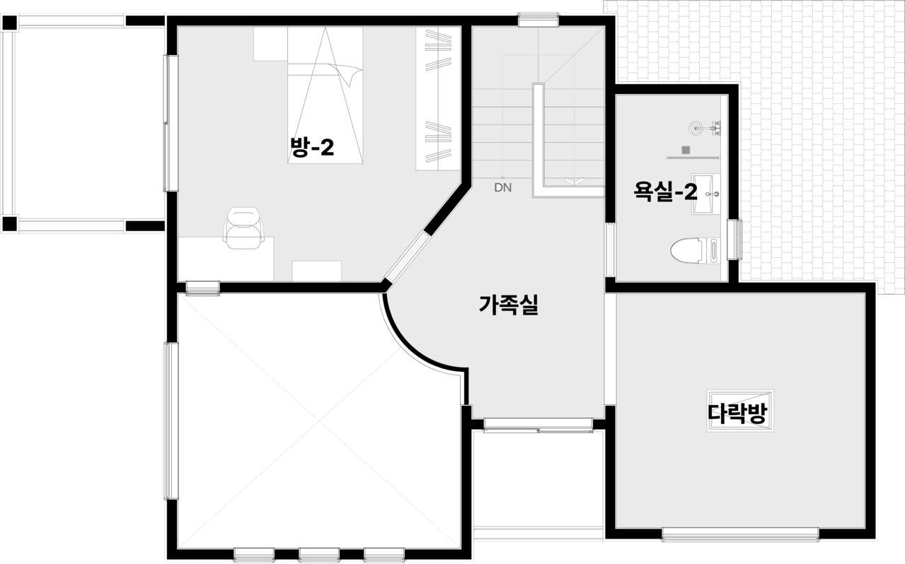 현관, 거실, 주방, 다용도실| 방 2, 화장실2, 드레스룸, 창고, 보일러실, 가족실, 다락방