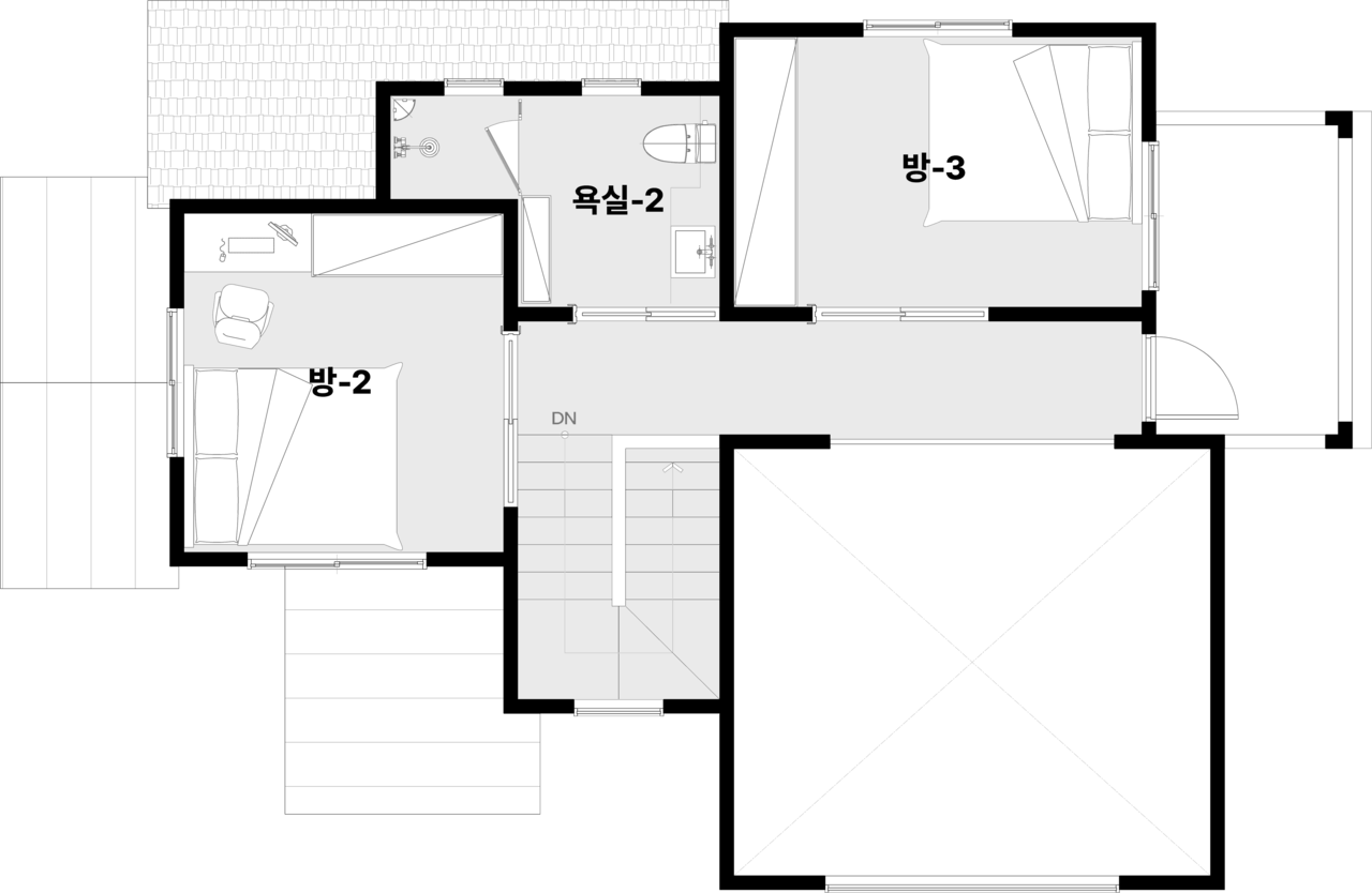 방 3개가 여유로운 크기로 들어가 있는 설계입니다.