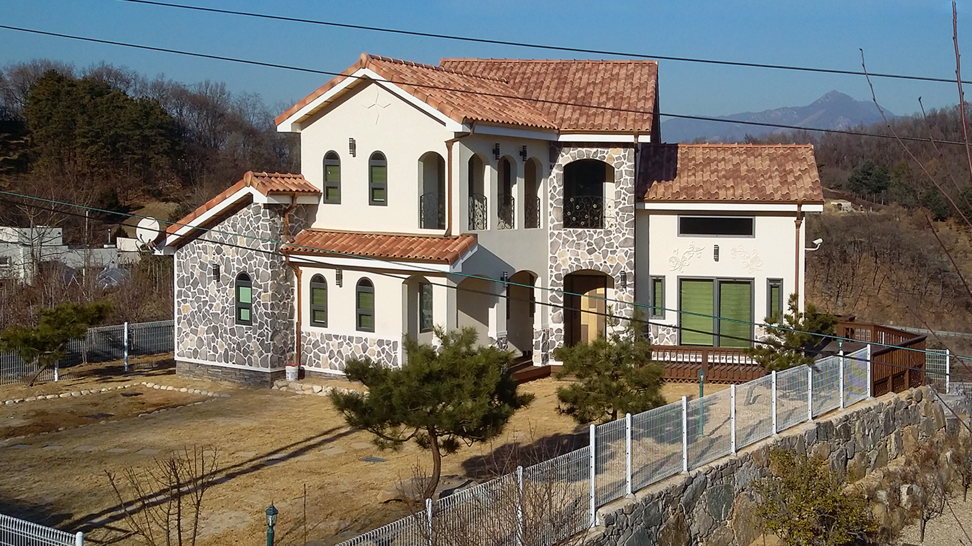 지붕은 스페니쉬 기와를 사용해 튼튼하게 마무리했습니다.