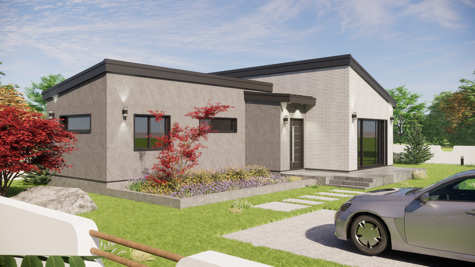 'ㄱ'자 배치의 심플한 단층 주택