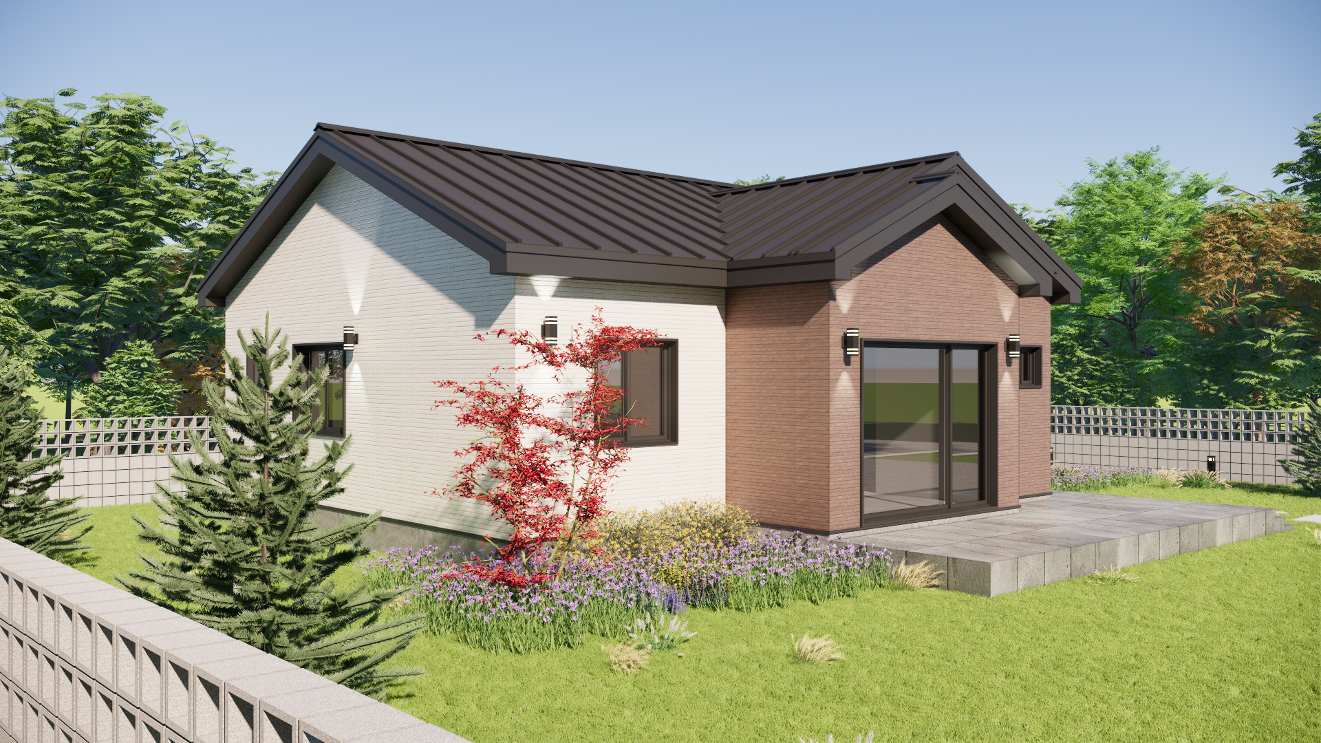 외장은 브라운, 아이보리 세라믹 사이딩을 사용하여 부드러운 느낌을 주고