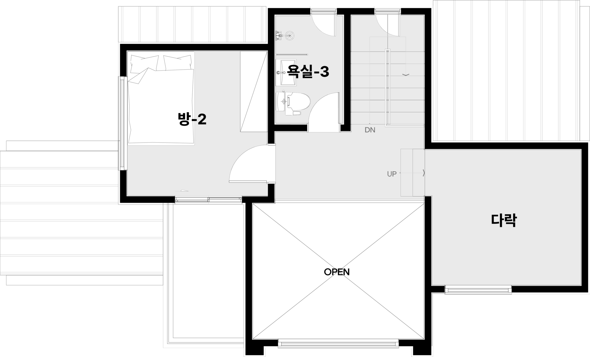 현관, 거실, 주방, 다용도실| 방 2, 화장실 3, 드레스룸, 보일러실, 다락