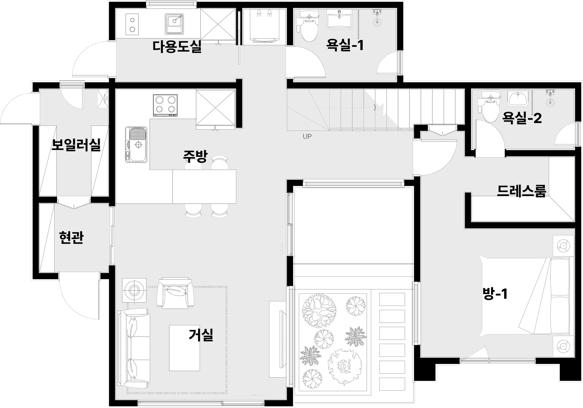 현관, 거실, 주방, 다용도실| 방 3, 화장실 3, 드레스룸, 창고