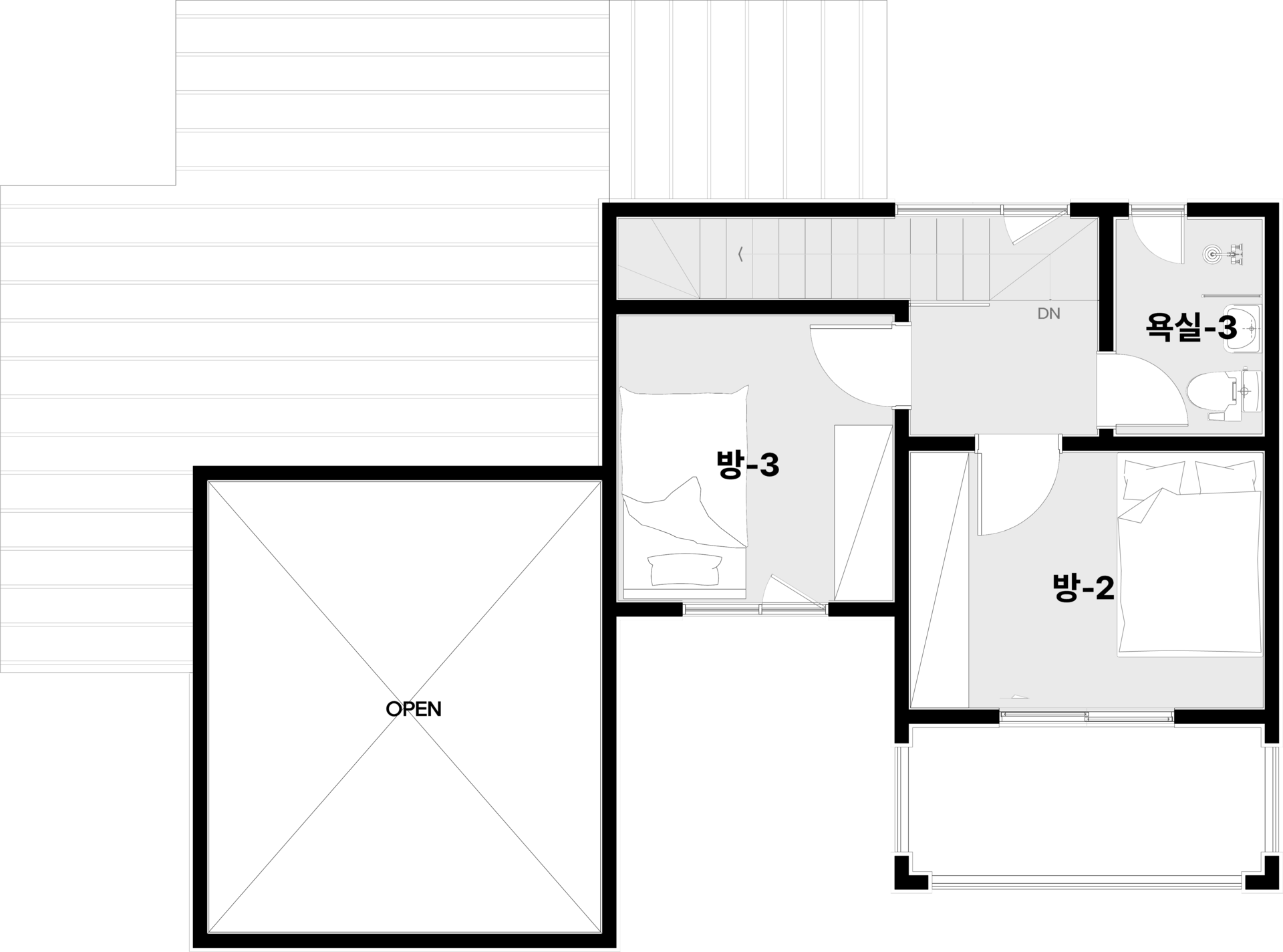 거실이 오픈천정으로 넓은 공간감을 가집니다.